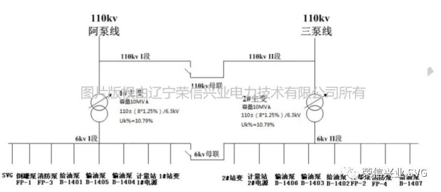 為解決現場存在泵機停機問題,遼寧榮信興業電力技術有限公司在現場布置一套6kV、3.6Mvar的RSVG系統,對6kV系統側電網電壓不平衡進行治理。設備采用角接拓撲結構,風冷戶內柜式安裝方式。RSVG在原有無功補償基礎上,增加負序電壓抑制功能。
