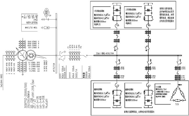 2008 年,RXPE 為 CSG 梧州 500 千伏變電站設計并交付了 210 萬兆乏的 SVC。SVC 包括一個 TCR 支路和兩個諧波濾波器支路以及兩個MSC 支路,輸出電容從 - 120 兆乏電感到+ 210 兆乏電容。中壓母線設計為 35kV,通過專用降壓變壓器與 500kV 母線相連。