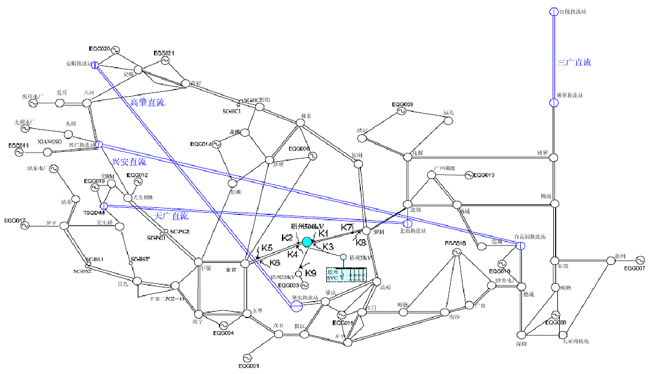 根據一項系統研究,梧州變電站額定電壓為 210 兆乏的 SVC 將改善這種情況。廣西-廣東走廊的傳輸限制將增加 100 兆瓦,云南-廣東走廊將增加 30 兆瓦,貴州-廣東走廊也將增加 30 兆瓦。因此,理論上,SVC 在運行時將獲得額外的 160 兆瓦功率。同時,當附近發生任何線路故障時,該 SVC 也可以提高動態電壓穩定性。