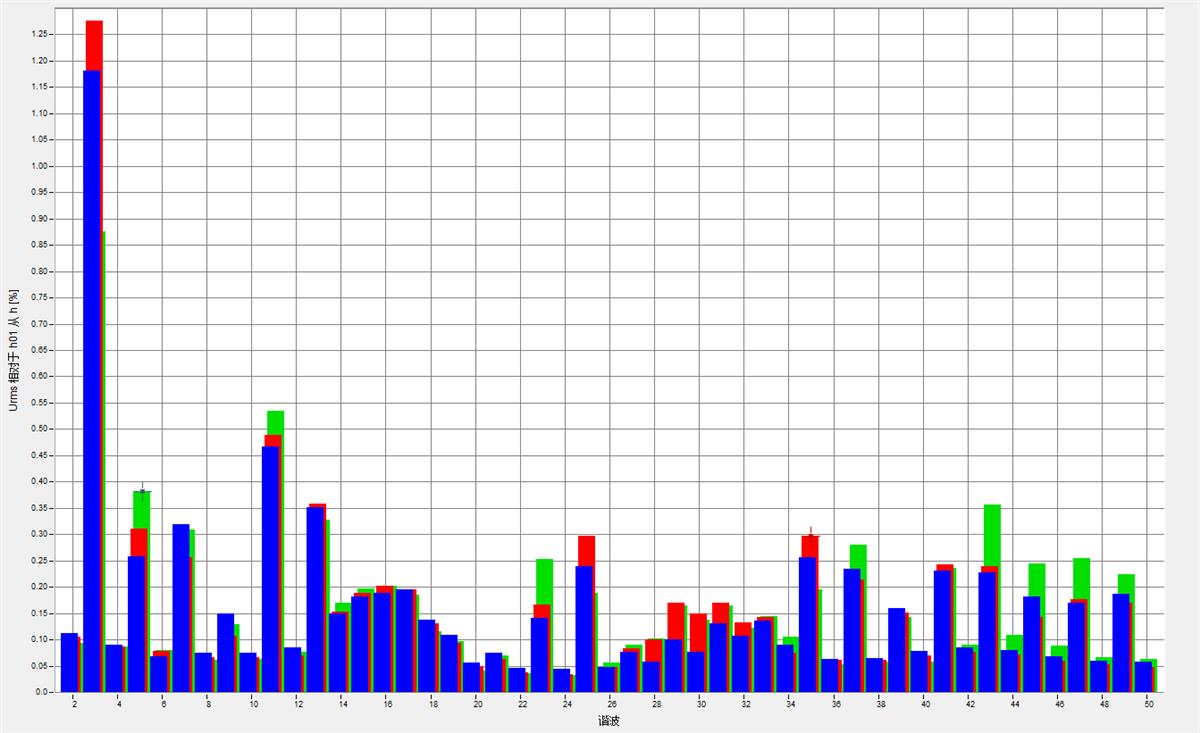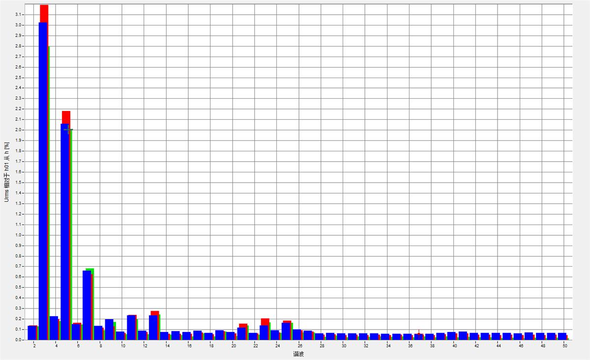 圖 2.2、2.3分別給出了SVG投運前后光伏電站諧波電壓頻譜。通過對比可以得出,投入SVG裝置后,35kV諧波電壓大大減小,濾波效果顯著。