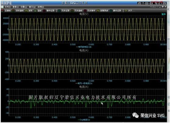青島四方龐巴迪鐵路運輸設備有限公司(簡稱BST),成立于1998年,是由中國四方機車車輛有限責任公司與龐巴迪公司出資組建的中外合資企業,其主要產品為高鐵、動車組。 (1)青島四方龐巴迪鐵路運輸設備有限公司廠區內試驗電源參數如下: 額定電壓:27.5kV 額定容量:10MW (2)問題描述 8列CRHi型動車組同時升弓受電試驗時,27.5kV電網開始出現嚴重次同步振蕩,導致所有機車封鎖脈沖而無法正常運行。下圖所示為8列試驗機車時27.5kV側的電壓、電流波形,電壓、電流均出現嚴重的次同步振蕩。對其電流FFT分析之后的數據,其諧波成分主要為45和55HZ。