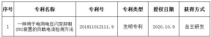 榮信興業又獲得一項發明專利,專利名稱為“一種用于電網電壓閃變抑制SVG裝置的負載電流檢測方法”,專利號為ZL201811012111.9,明細見下表