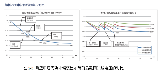 中壓串補主要用于長距離中壓配電線路。例如35kV、10kV配電網絡中,由于偏遠地區用電負荷較小、且分散較遠,導致配電線路長度遠遠超出了常規送電半徑,此時配電線路末端電壓逐漸跌落導致居民用電和工礦企業負荷無法正常運轉。在此情況下,常規并聯電容補償(柱上電容)或調壓變壓器(1:1可調壓變壓器)并不能從根本上解決問題,而且會隨著末端用電負荷的增高而補償效果急劇變差。中壓串補可以徹底解決上述問題,縮短等效電氣距離,有效提高線路末端??壓。